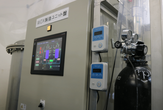 酸素と純水をWOX®製造装置に供給し、